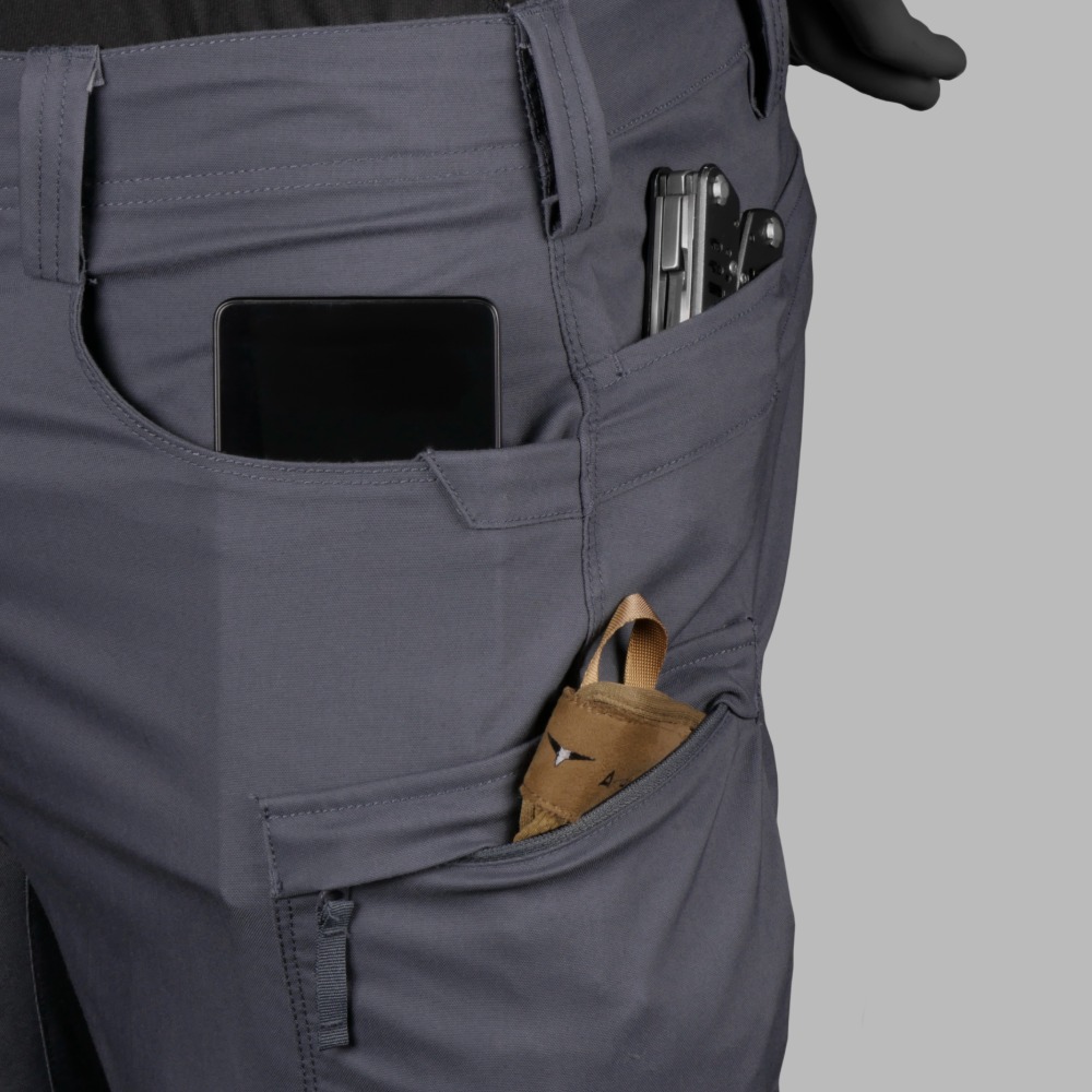 Усиление кромки передних открытых карманов в области ношения клипсы ножа.