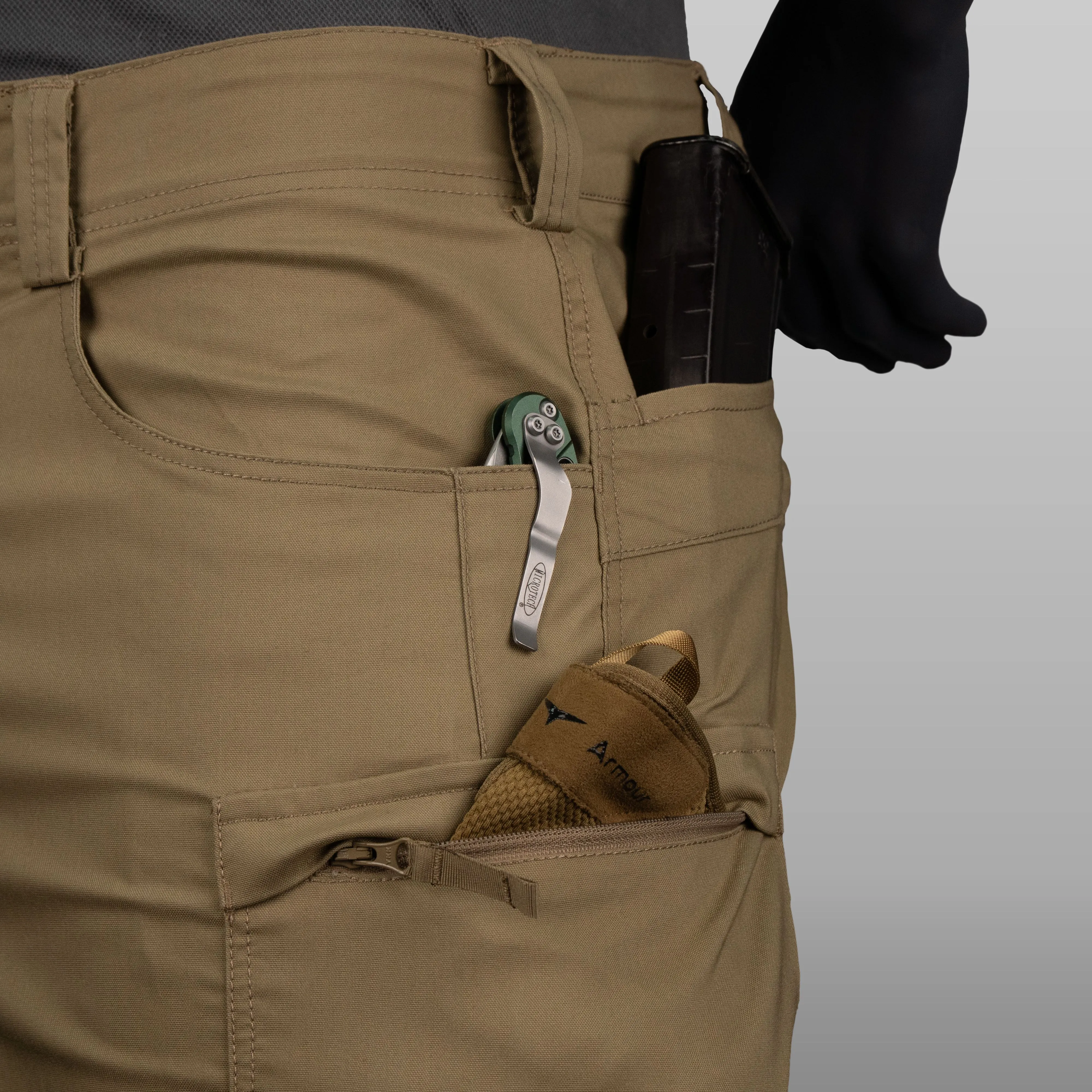 Усиление кромки передних открытых карманов в области ношения клипсы ножа