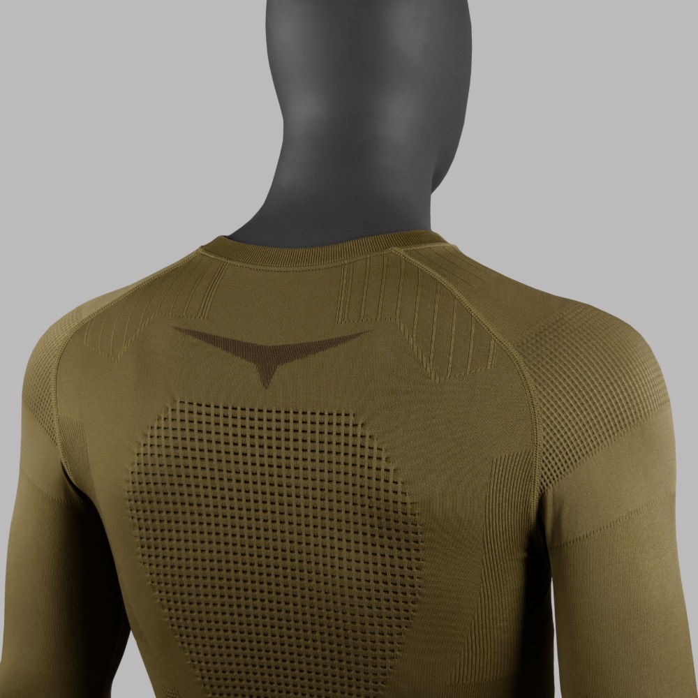 Бесшовная технология трехмерной зональной вязки позволяет получать разную плотность и фактуру белья, что обеспечивает сохранение тепла и лучшее отведение влаги на разных участках тела.