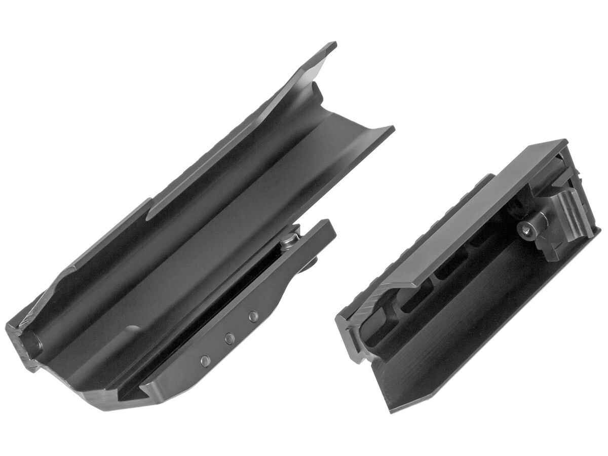 Особенности: Крышка состоит из двух разъёмных элементов. Монтаж передней части осуществляется на боковую планку Ласточкин Хвост с заходом на колодку целика. Задняя часть фиксируется в штатном посадочном месте.