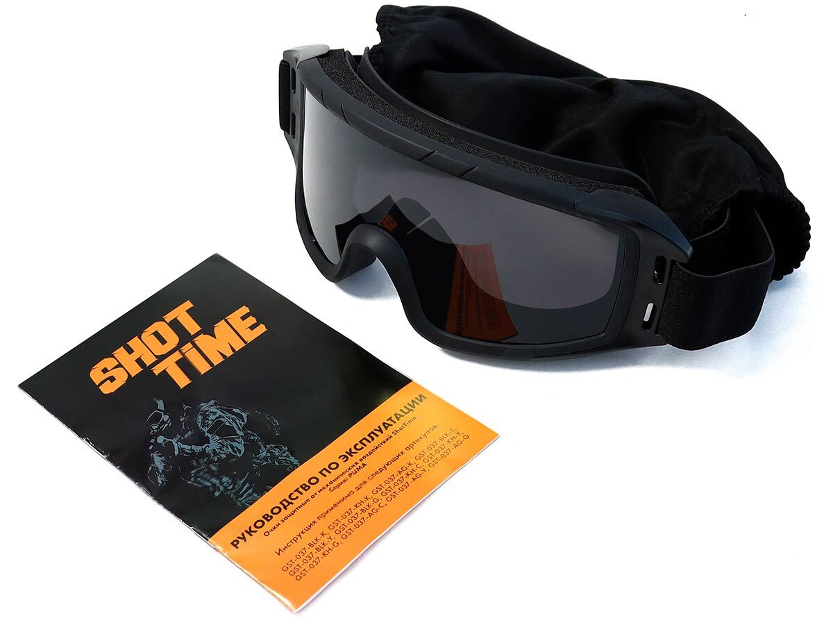 ShotTime Puma — защитные очки-маска с большими поликарбонатными линзами с полимерной оправой обеспечивают широкий угол обзора. Линзы устойчивы к царапинам и ударам. Обладают UV400 защитой, отфильтровывают до 99% ультрафиолетового излучения и вредного синего света. Поликарбонатные линзы толщиной 2,6 мм с покрытием, уменьшающим блики и оптимизирующим светопропускание. Широкая эластичная стропа надёжно фиксирует очки на голове или шлеме. Чехол-рукав защищает линзу, когда очки не используются.