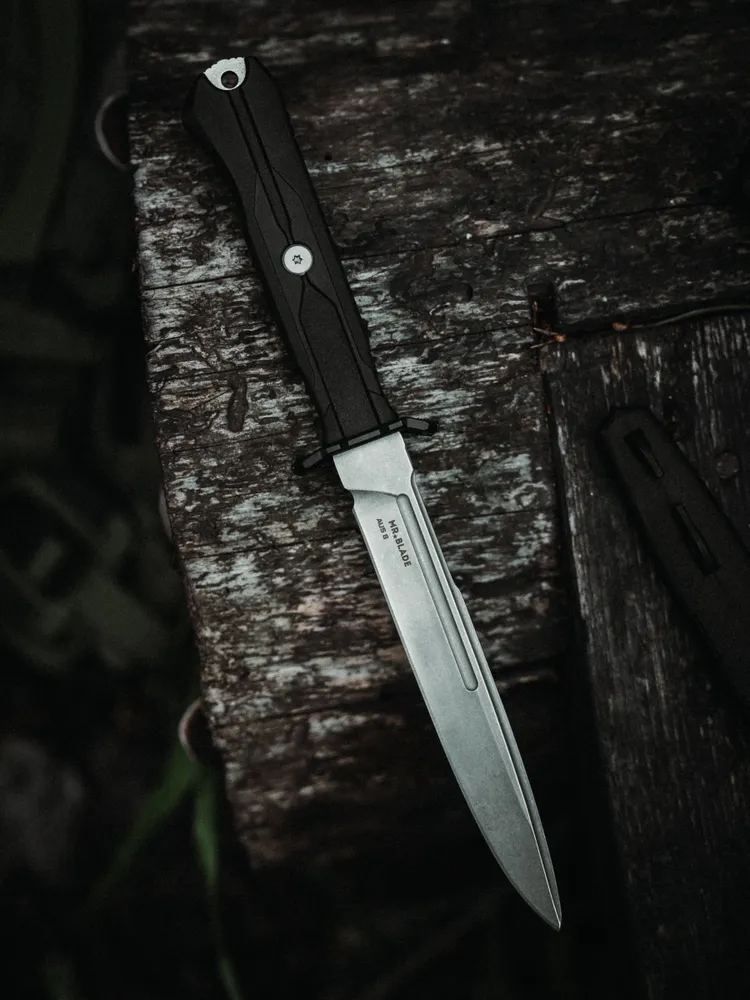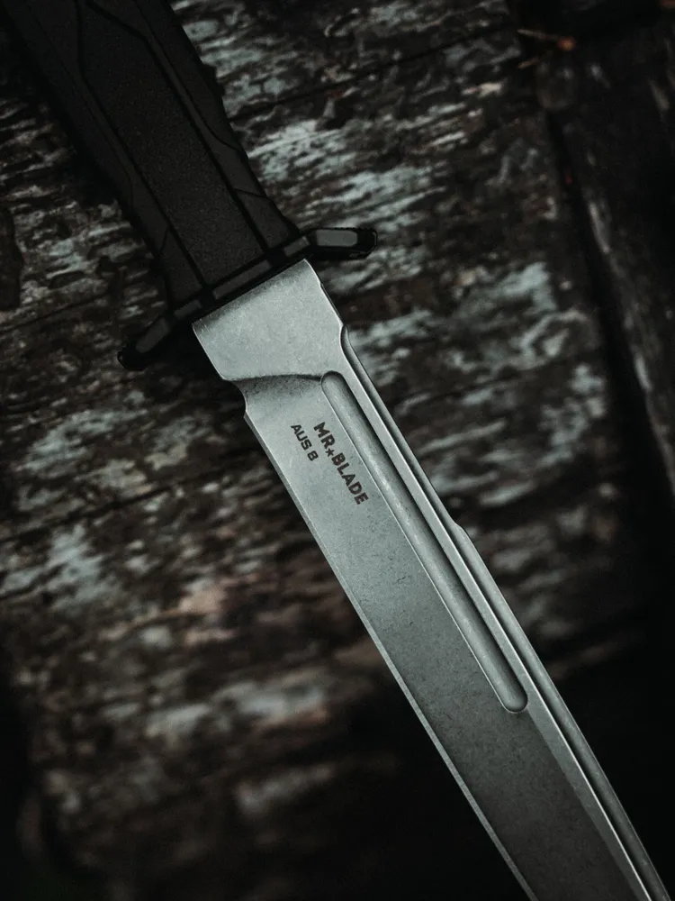 Нож Леший расширяет линейку Mr.Blade в сторону специальных ножей, изначально предназначенных для гражданского рынка и доступных широкому кругу пользователей, но разработанных с учетом требований силовых структур. Форм-фактор и конструкция ножа выбраны такими для размещения «Лешего» в стропах MOLLE, что сейчас является универсальным способом крепежа для военного и походного снаряжения. Этим обусловлен узкий клинок и литые ножны, лишь незначительно увеличивающие габариты ножа.