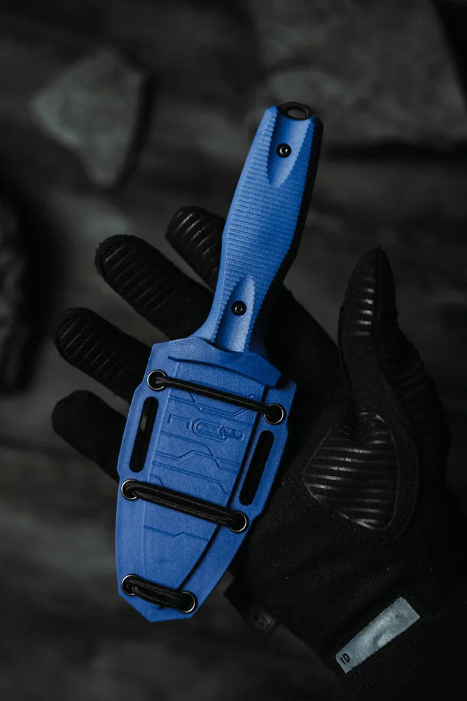 Ножны из литого пластика идут в комплекте с шок-кордом, позволяющим закрепить нож на снаряжении без особого труда.