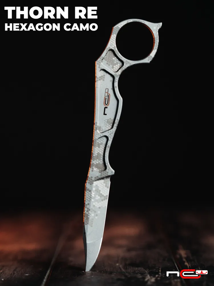THORN Razvedos Edition Hexagon — серийная версия без номера. Эта версия ножа настолько серьезно изменена, что ее можно считать не просто глубокой модификацией, но новой моделью. В разработке этой версии Thorn принял самое деятельное участие военный блогер Разведос, который обобщил требования специалистов к ножам подобного типа и внес ряд предложений по усовершенствованию базовой модели. Компания N.C.Custom со своей стороны скрупулезно воплотила в новинке эти рекомендации.