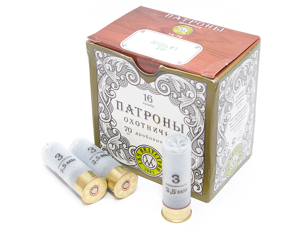 ПАТРОН ДЛЯ ГРАЖДАНСКОГО ОРУЖИЯ 16Х70 (3) [ПЛ 30 СКМ ИНДУСТРИЯ]