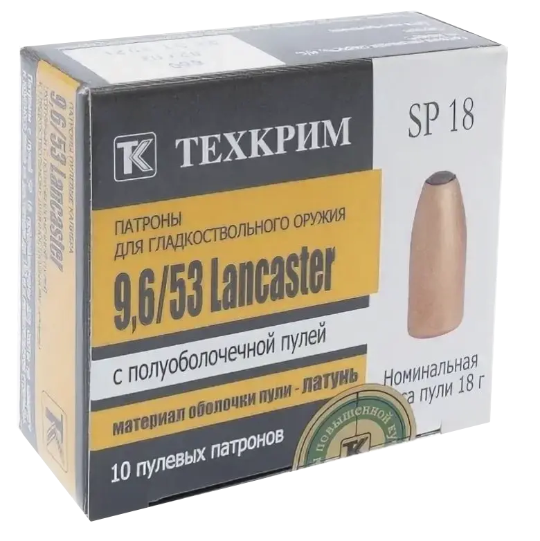 Патрон пулевой 9,6/53Lancaster SP 18; Калашников; 480 шт/ кор латунь