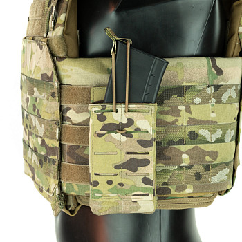 Каркасный подсумок штурмовой открытого типа для быстрого извлечения магазина, при необходимости магазин удерживается кордом с пуллером. На внешней стороне расположен интерфейс MOLLE для возможности установить дополнительные подсумки или другую экипировку. Компактный, легкий, универсальный подсумок для АК\М4 магазинов, подойдет там, где нужно обеспечить быстрое извлечение магазина. Главная отличительная черта этой версии подсумка в возможности быстрого возврата магазина в подсумок благодаря горловине, которая держит форму.